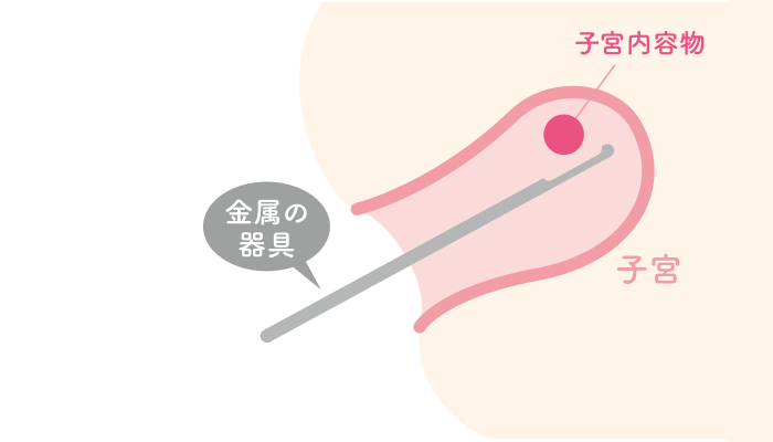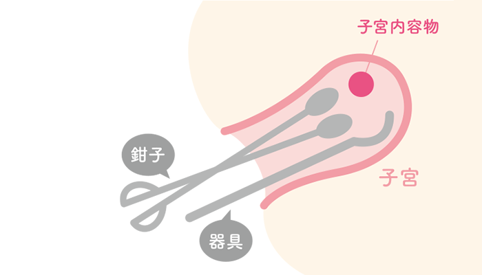 スプーン状の器具や鉗子を使用して、子宮内容物を掻き出します。