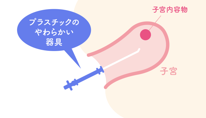 ストロー状のプラスチックの器具を使用して、医師の手動吸引手技により子宮内容物を取り出します。